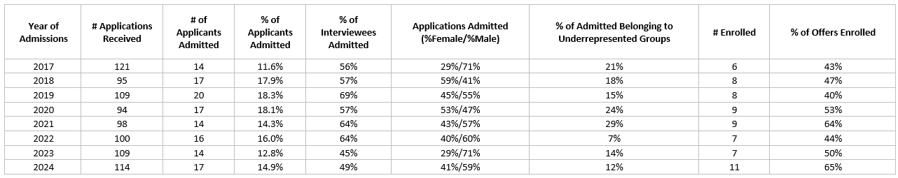 Statistics for MS/PhD degree in Medical Physics, 2021-2025