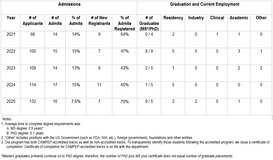 Statistics for MS/PhD degree in Medical Physics, 2021-2025